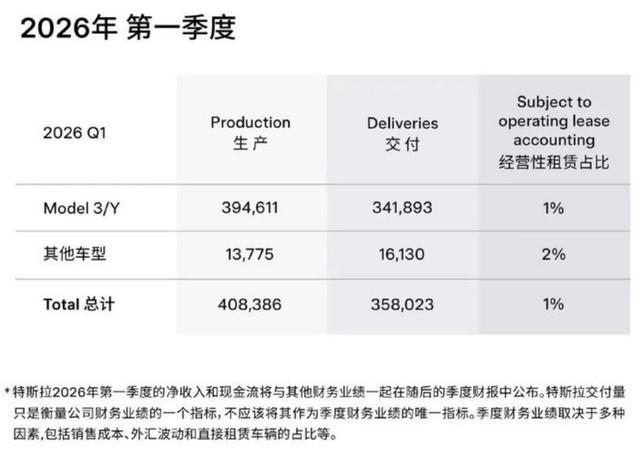 但是这些增长数字,需要放在特定的背景下加以审视。要知道,彼时的2025年第一季度,正值特斯拉Model Y车型换代以及马斯克个人言论引发争议的时期,交付量基数相对较低。因此,2026年这个6.5%的同比增长数据,其“含金量”也就需要大打折扣了。更值得警惕的是,此前华尔街分析师普遍预期的交付量为36.6万辆,这也就说,特斯拉的实际交付量并没有达到目标。